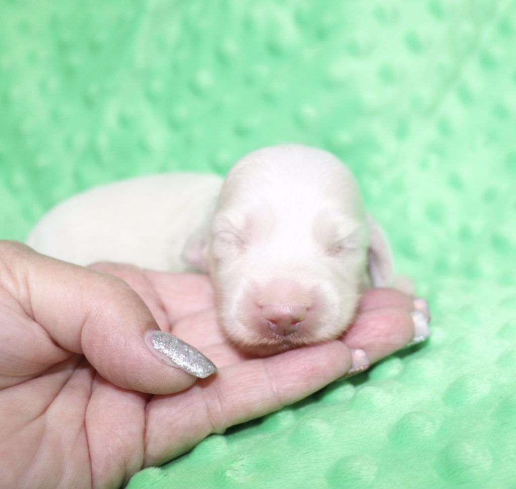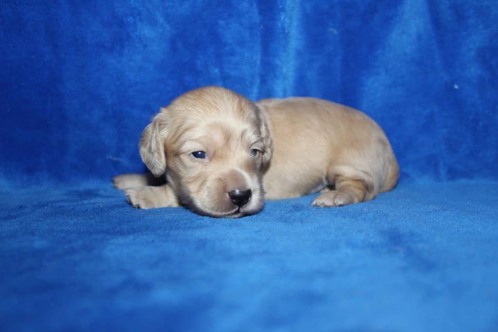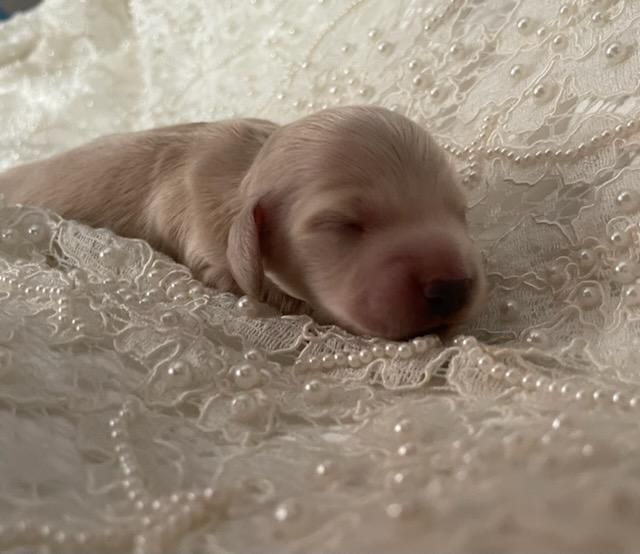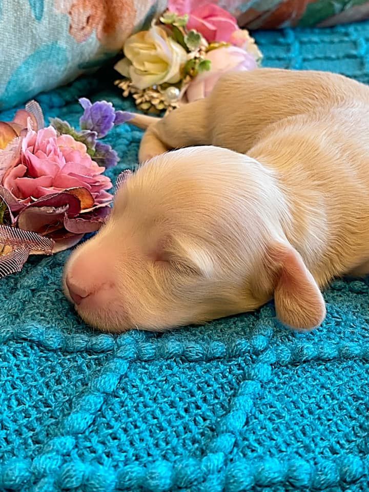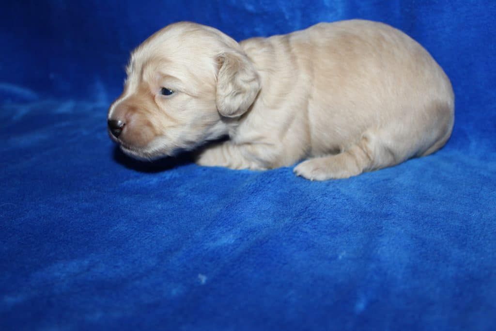 We specialize in English Cream Miniature Dachshunds! Our wait list is usually 6 months in advance depending on gender and color preferences, so we are not the breeder to contact if you are looking for a puppy RIGHT NOW. However, we certainly understand the urgency of wanting the patter of little paws in the home! Occasionally, a family on our wait list will have a change of circumstances resulting in a puppy becoming available unexpectedly. Otherwise, our Creme of the Crop Dachshunds's families are a patient pack!