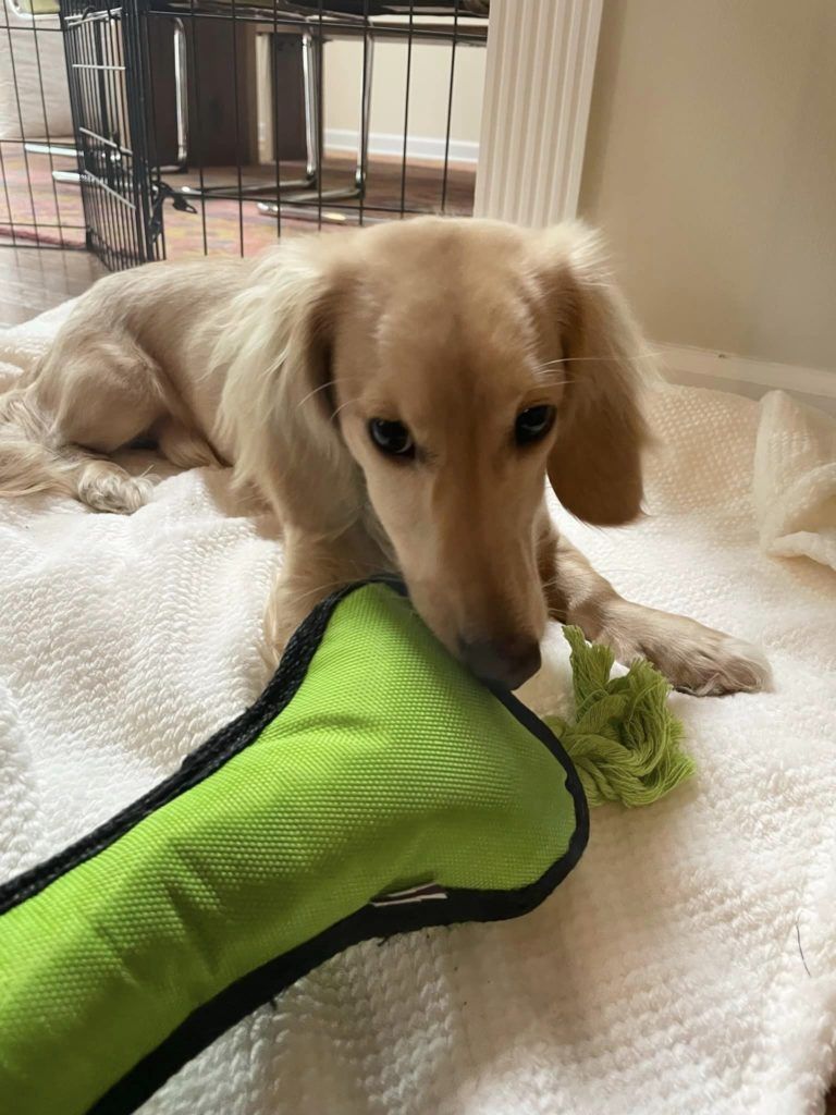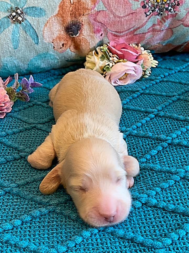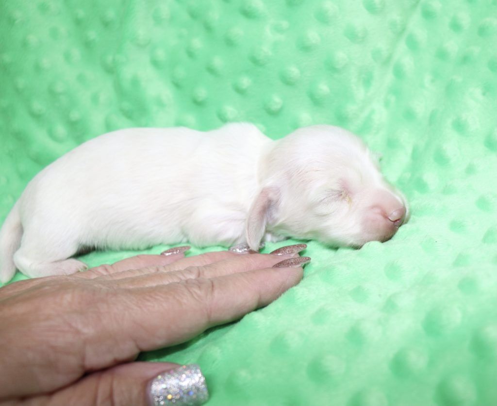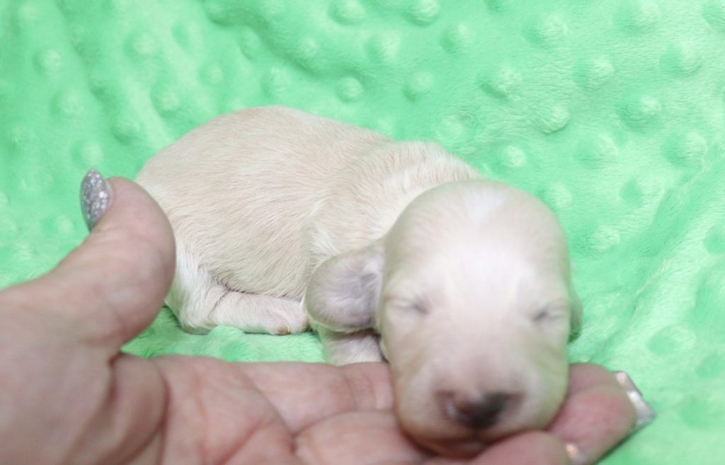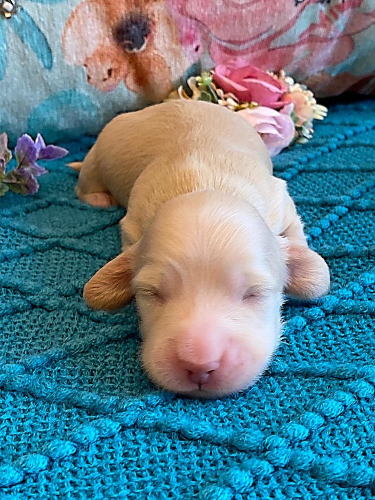 We specialize in English Cream Miniature Dachshunds! Our wait list is usually 6 months in advance depending on gender and color preferences, so we are not the breeder to contact if you are looking for a puppy RIGHT NOW. However, we certainly understand the urgency of wanting the patter of little paws in the home! Occasionally, a family on our wait list will have a change of circumstances resulting in a puppy becoming available unexpectedly. Otherwise, our Creme of the Crop Dachshunds's families are a patient pack!