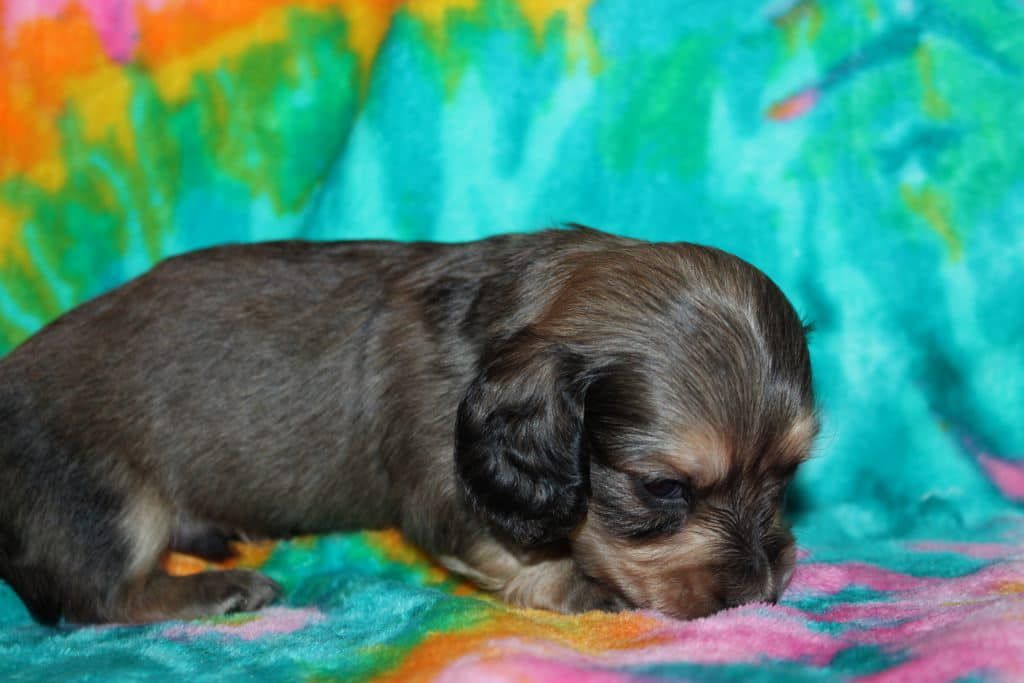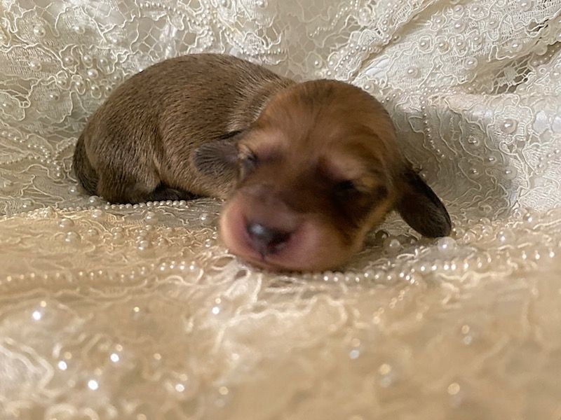 Exquisite Romeo from Piper and Kai’s litter born January 17, 2023 is another precious boy 4 day old boy who can sweep any dachshund lovers off their feet. It’s impossible not to fall head over heals in love with this beauty! If you’re looking for your Romeo, please Contact Me for more information!